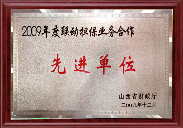 2009年,山西省財政廳度聯(lián)動擔保業(yè)務(wù)合作先進單位